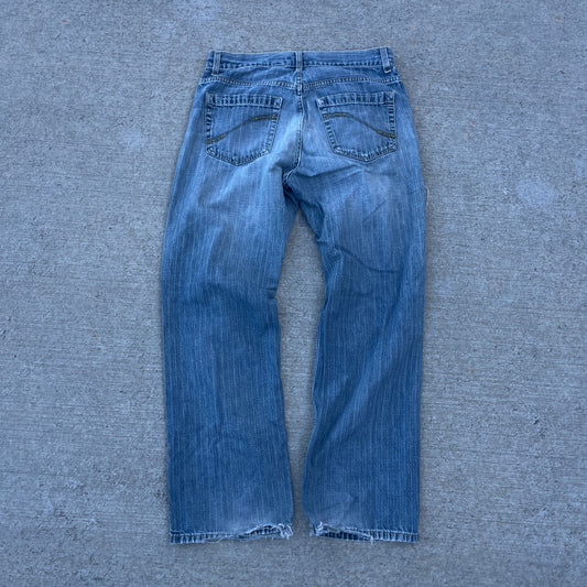 Y2K Distressed Knee Blowout Heel Drag Denim [31x30]