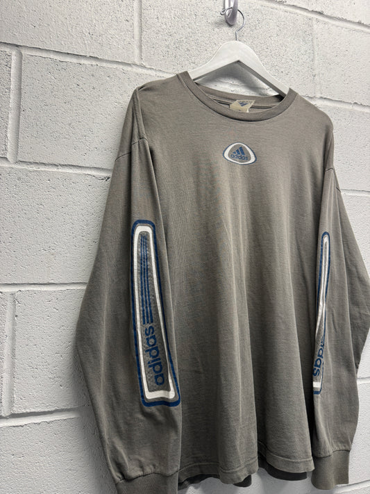 Y2K 2000s Adidas Longsleeve w/ Sleeve Hits [L]