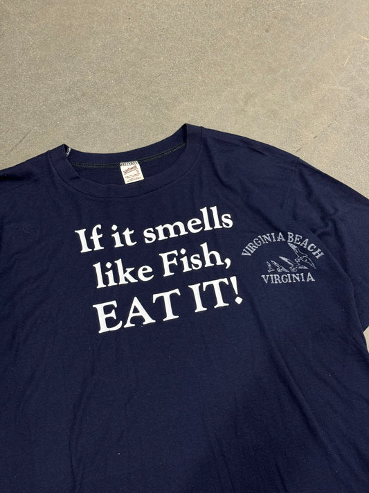 Vintage 1980s "If It Taste Like Fish, EAT IT!" Parody Text T-Shirt [XL]