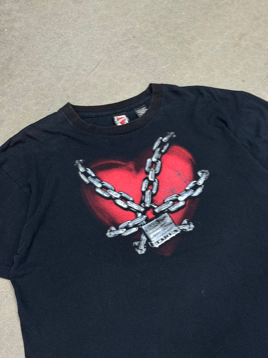 Vintage Y2K Taken Lock n Chain Heart Faded T-Shirt [XL]