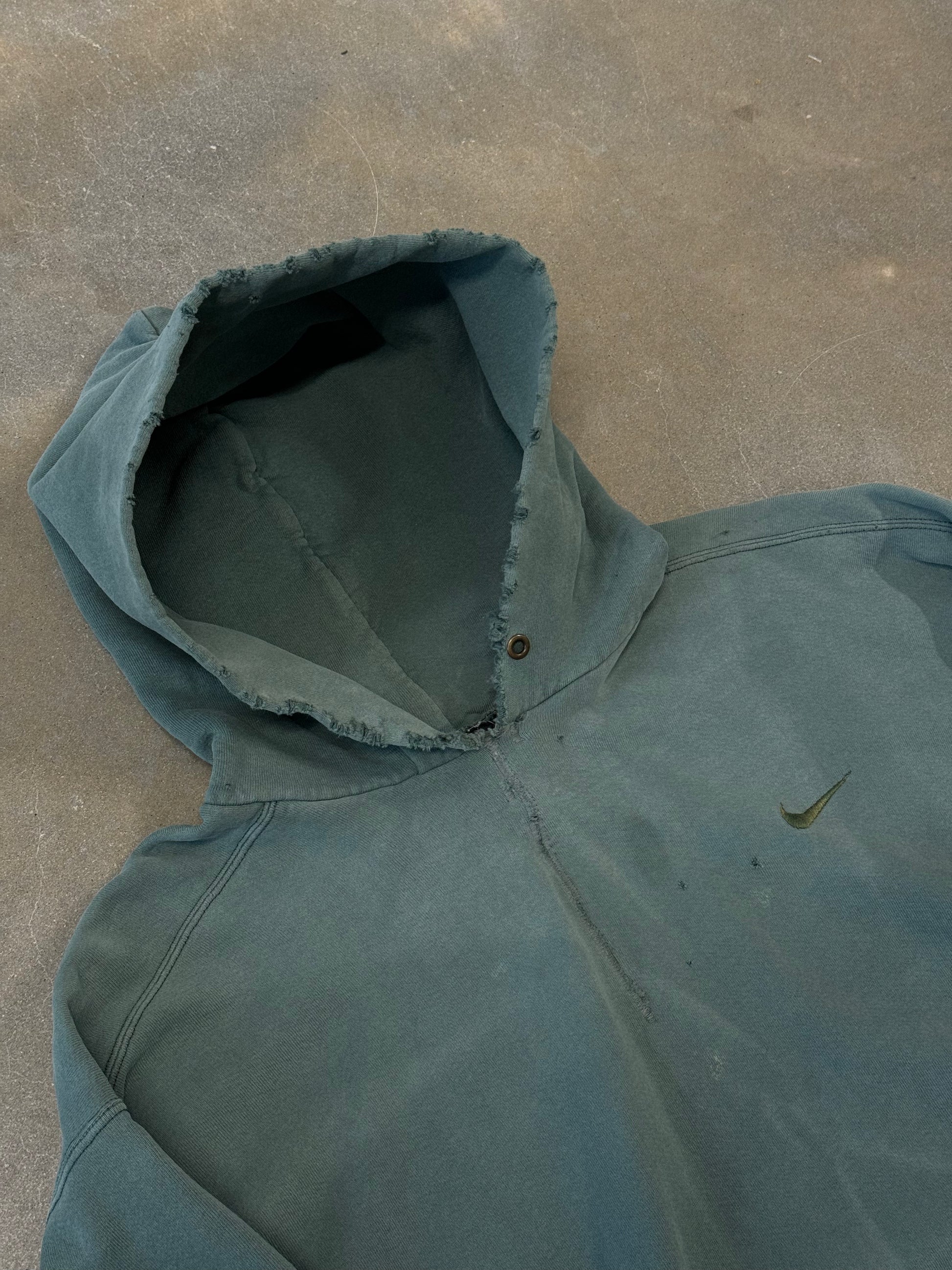 Vintage Y2K Thrashed Sage Green Nike Check Hoodie [XXL]